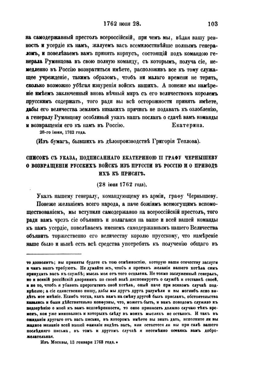 СПИСОКЪ СЪ УКАЗА, ПОДПИСАННАГО ЕК..\.ТЕРИНОЮ П ГРАФУ ЧЕРНЪIШЕВУ
