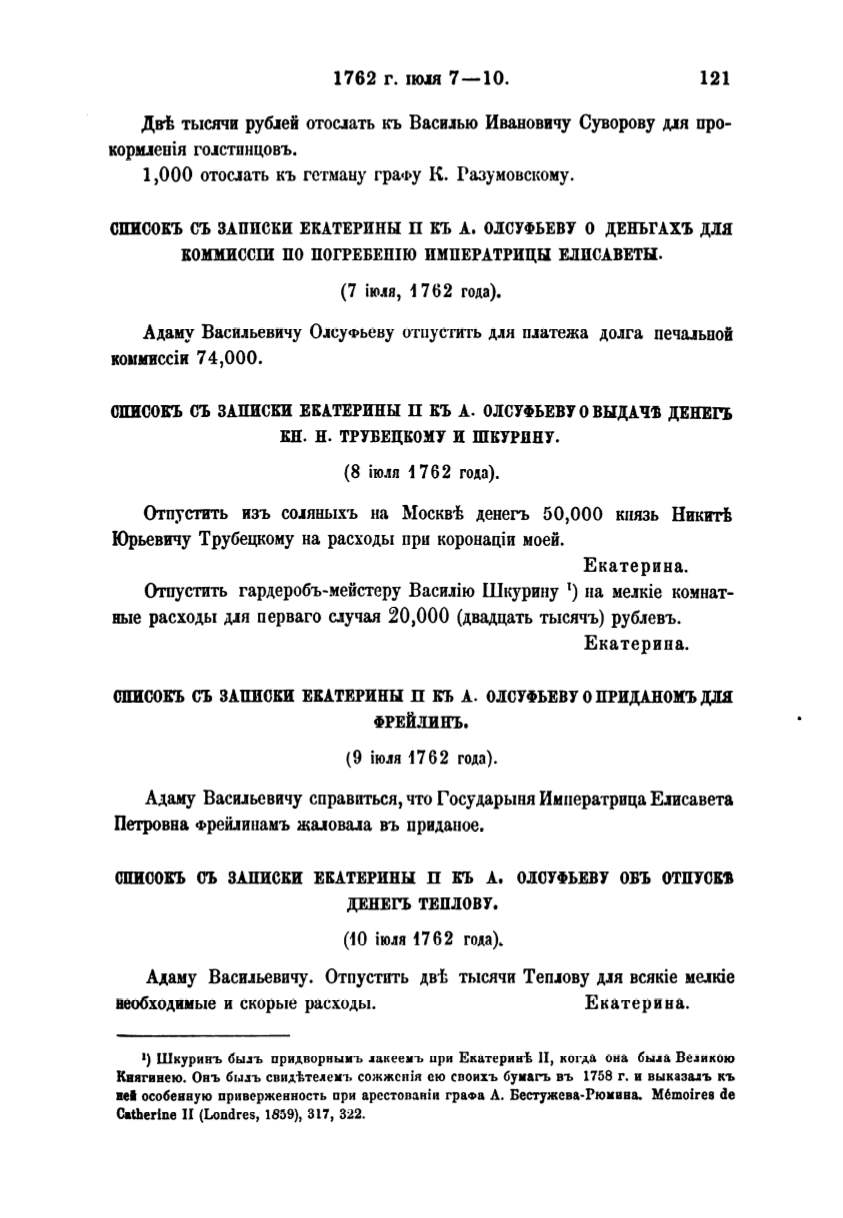СПИСОКЪ СЪ ЗАПИСКИ ЕКАТЕРИНЫ П КЪ А. OJICYФЬEB'f О ВЬIДАЧfJ ДЕНЕrь