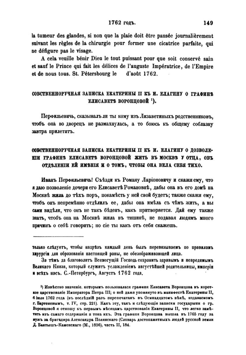 Изв'kстно значенiе. которы•ъ по.зьзовuасл граФиня Е.аисавета Воронцова въ корот