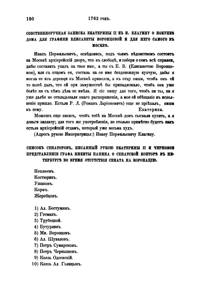 (Адресъ рукою Императрицы:) Ивану ПерФи.п.евичу ЕJагину.