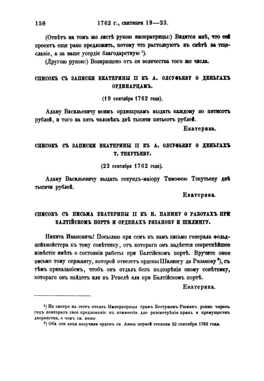 пвсьио тому сержанту, которой отвезетъ ордены Пlи.пmгу да Рязанову'), съ