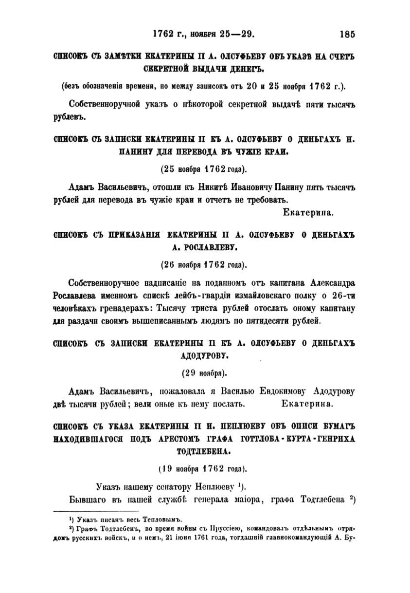 СПИСОКЪ СЪ ЗАПИСКИ ЕКАТЕРИНЫ: П КЪ А. ОJIСУФЬЕВУ О ДЕНЬГАХЪ