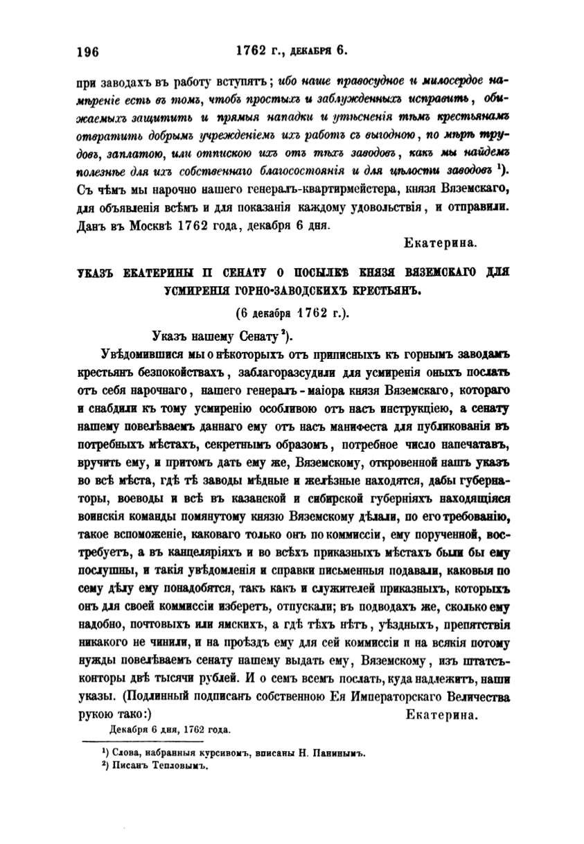нужды повыtваемъ сенату пашему выдать ему, Вяземскому