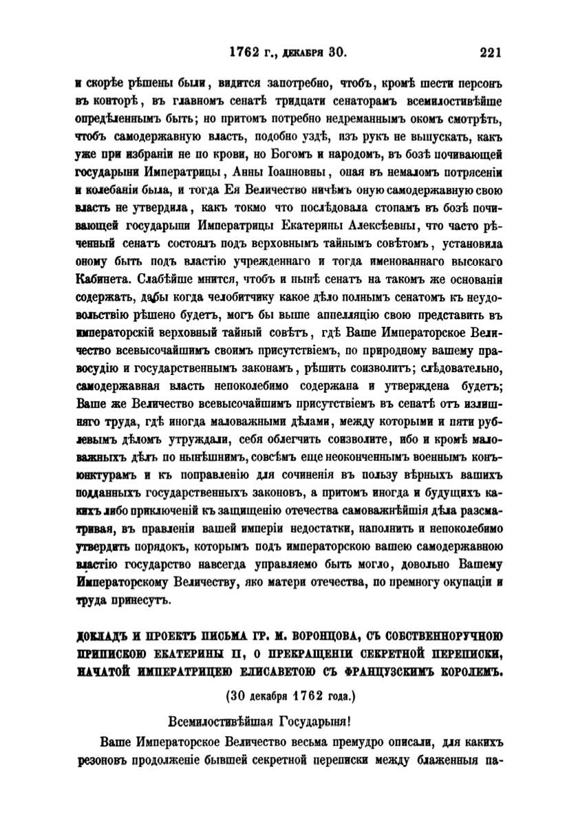 и кыебанiи бы.1а, и тогда Ея Ве.1ичество ничtмъ оную самодержавную свою
