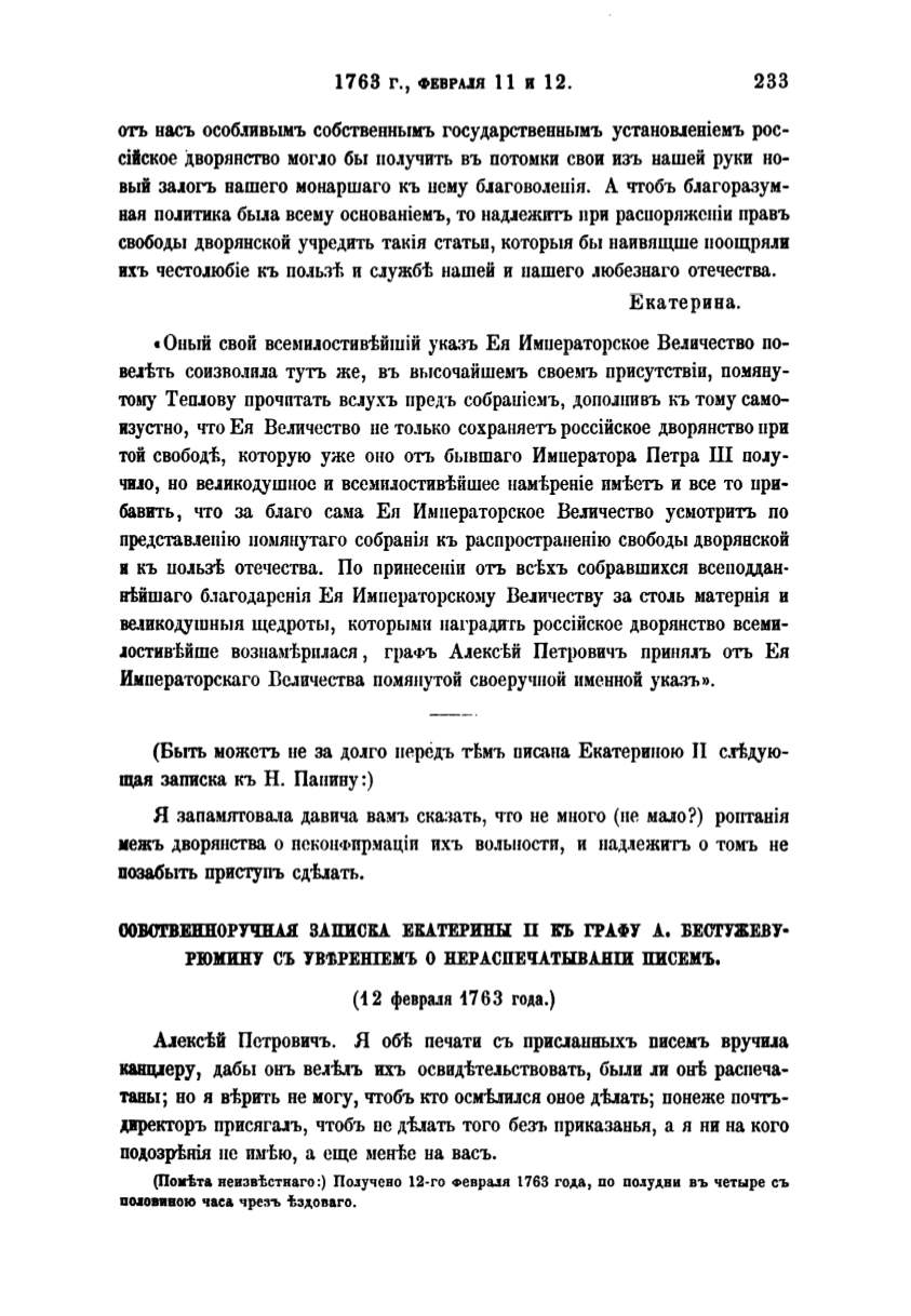 той свободt, которую уже оно отъ бывшаго Императора Петра Ш поо~у