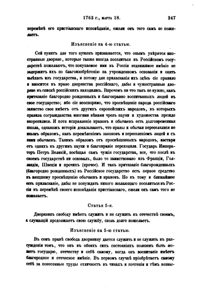 Изъясневiе на 5-ю статью.