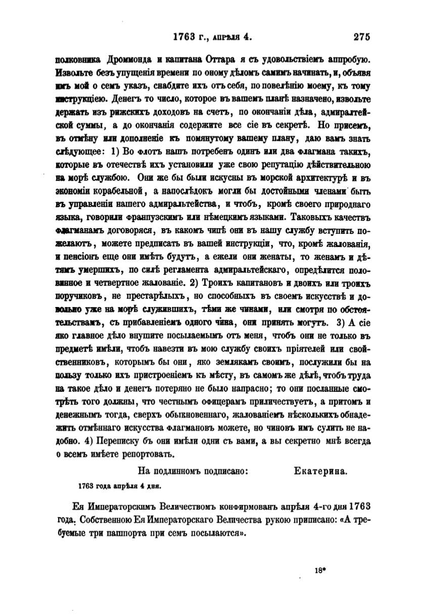 Еа Ииператорскпмъ Бе.mчествомъ копФир!иовапъ aпpt.Ja 4-го ,цва1763