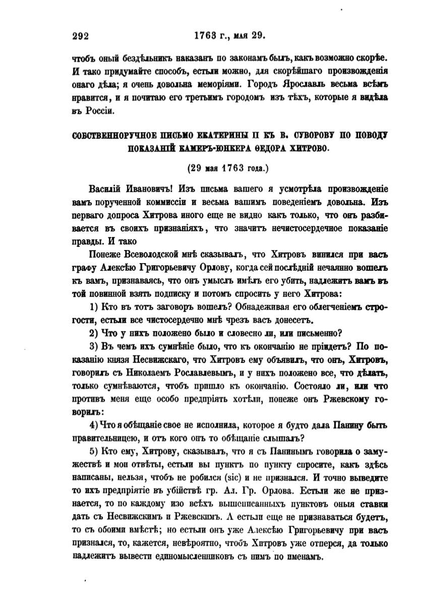 ОО:ВСТВЕIПIОРУЧНОЕ ПИСЬИО ЕJU.ТЕРИВЪI П :КЪ В. СУВОРОВУ ПО ПОВОДJ