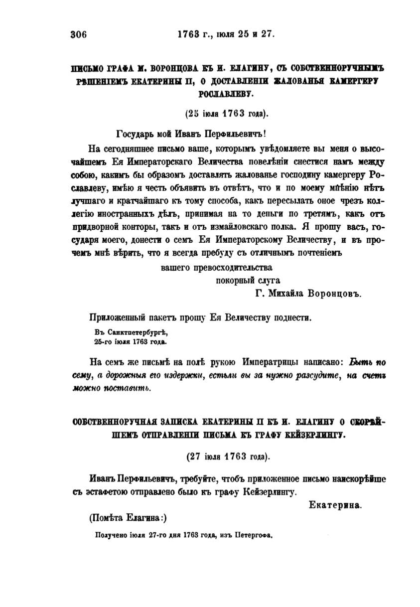 На семъ же письмt на по.1t руБою Имnератрицы написано: Быть