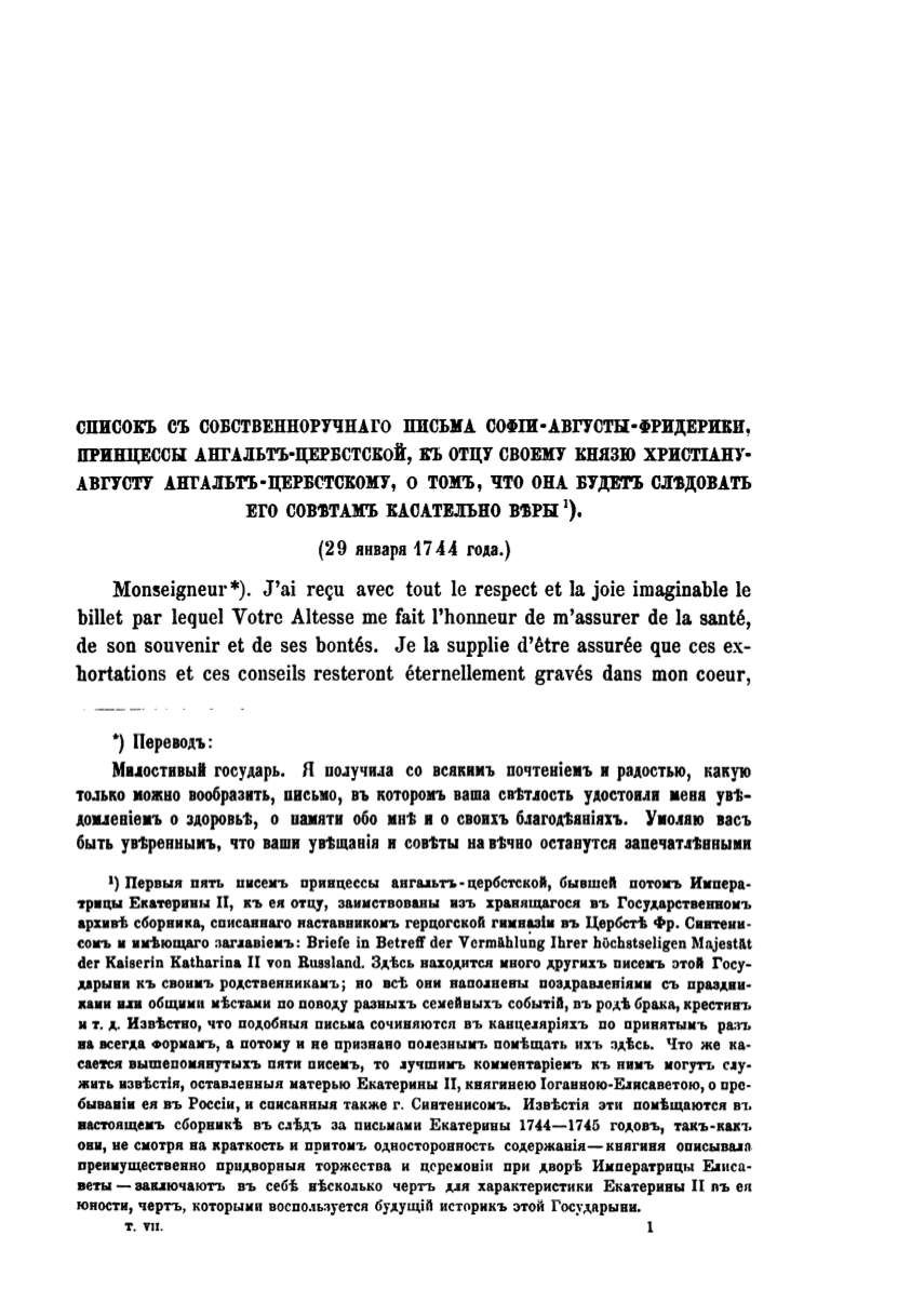 къ ея отцу, заимствованы изъ храиящаrося въ Госу.r.арствеииокъ