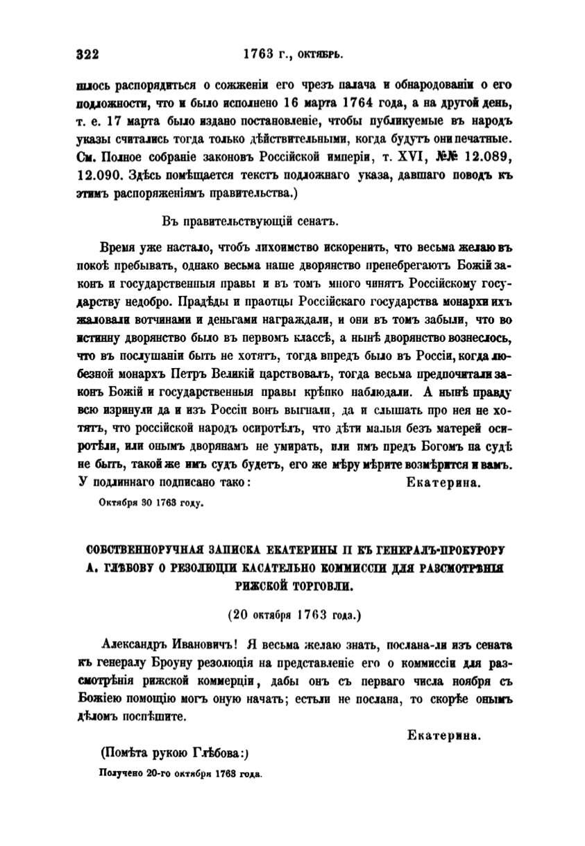 А.tексан,1.ръ Ивановичъ! Я весьма же.1аю знать, пос.tана-.tв взъ сената