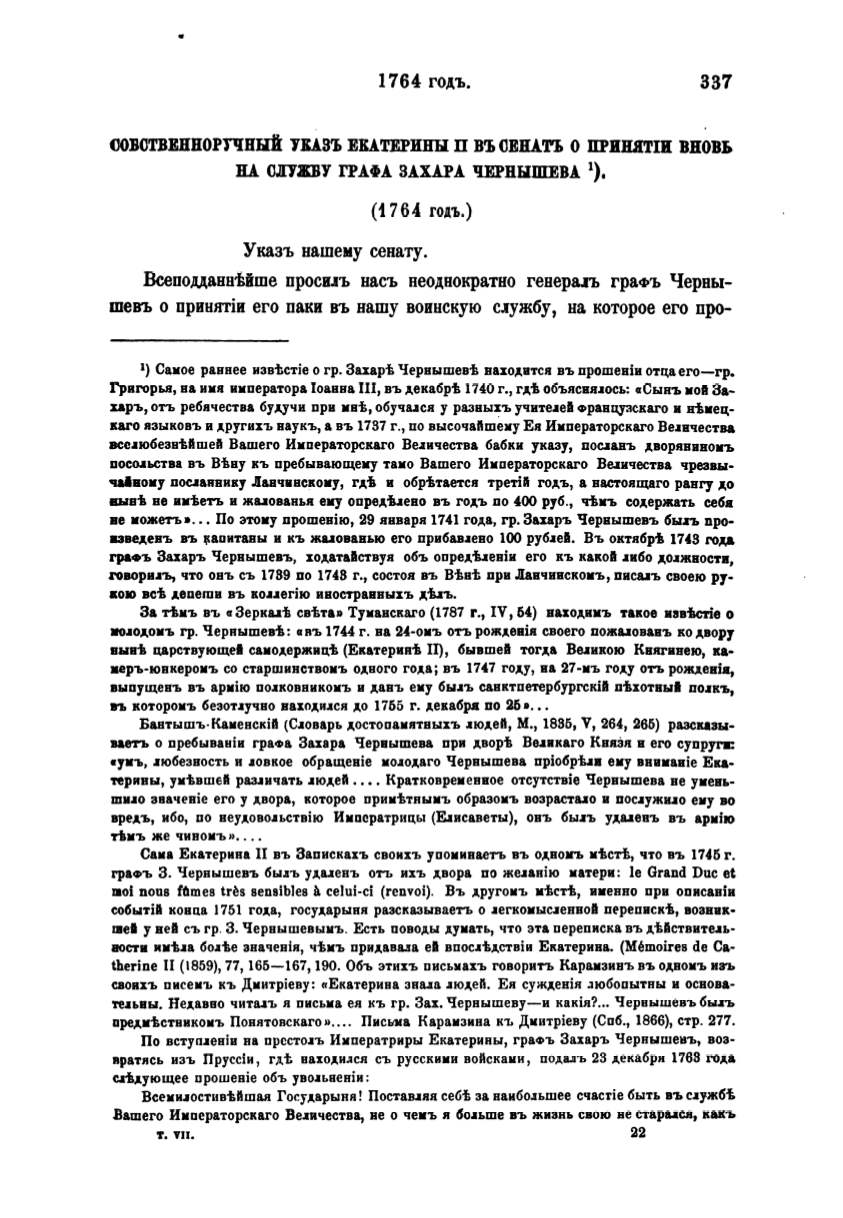 По встуnо~евiв ва прссто.1ъ Ихператриры Екатерины, граФъ 3ахаръ Чериыше11ъ, воз