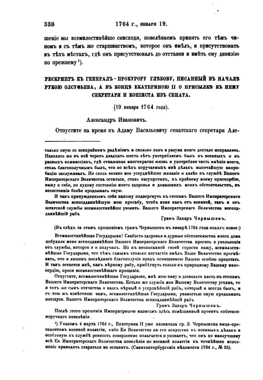 (Въ с.Уtдъ за этнхъ прошевiемъ граФЪ Червышевъ въ .нввар'k
