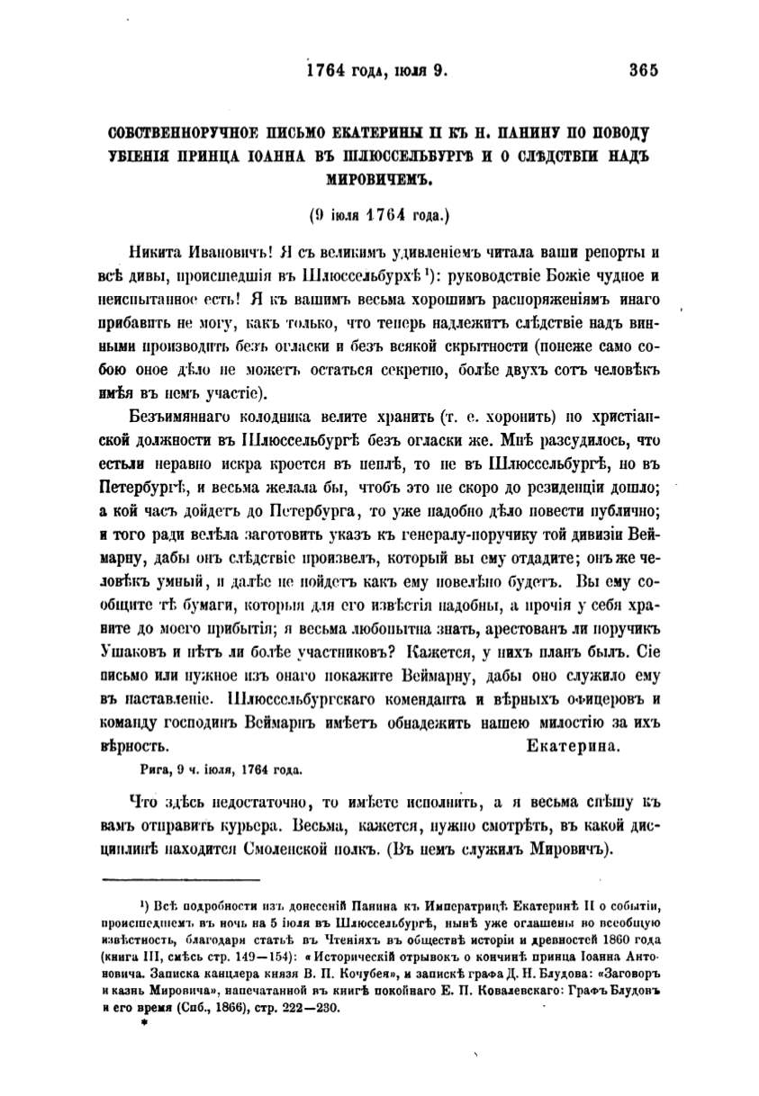 СО:ВОТВЕННОРУЧНОЕ ПИСЬМО ЕКАТЕРИНЬI П К'Ь Н. ПАИИНУ ПО ПОВОДJ