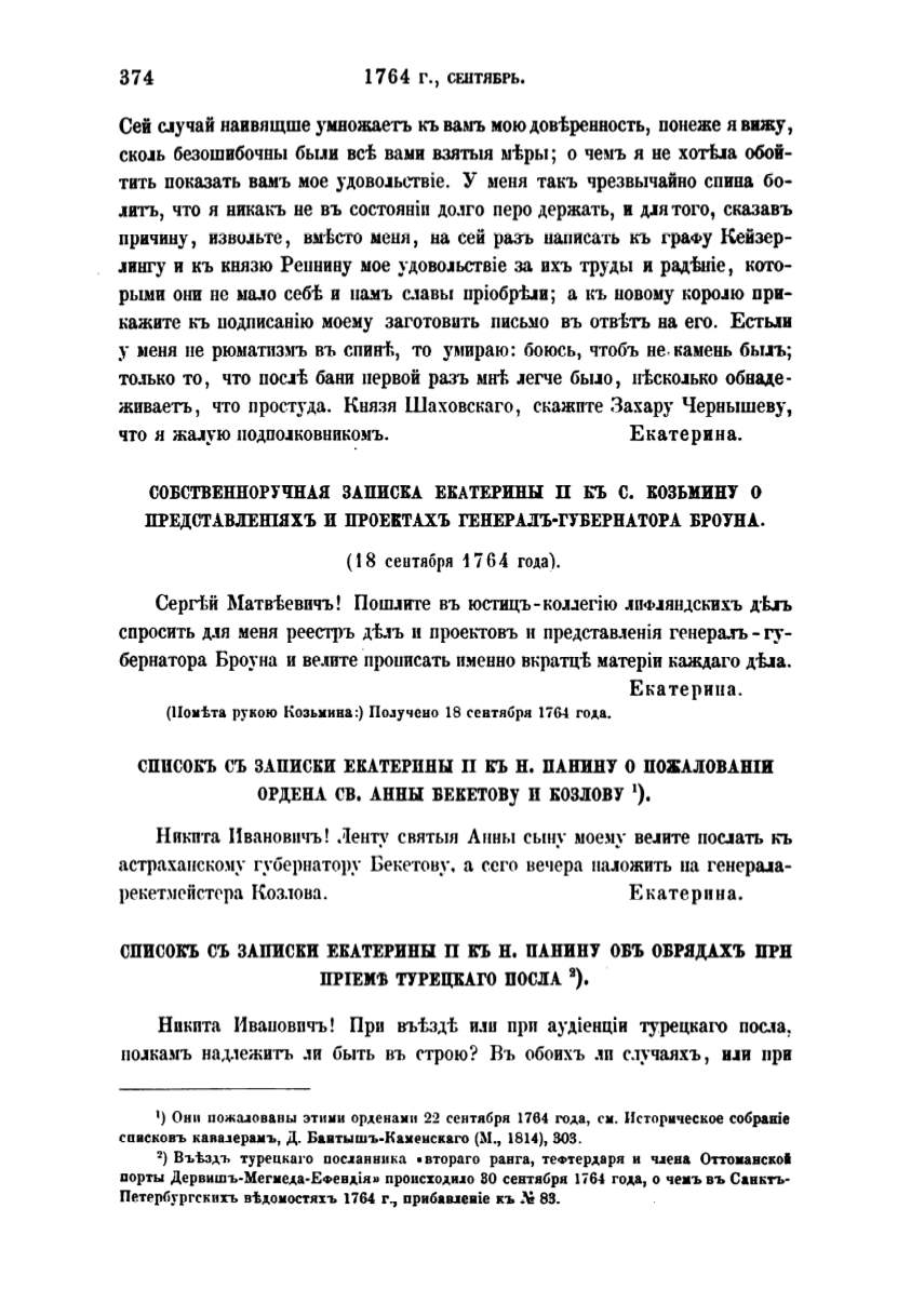 СО:ВСТВЕННОРУЧНАЯ ЗАПИСКА ЕКАТЕРJПШ П БЪ С. :КОЗЫШНУ О