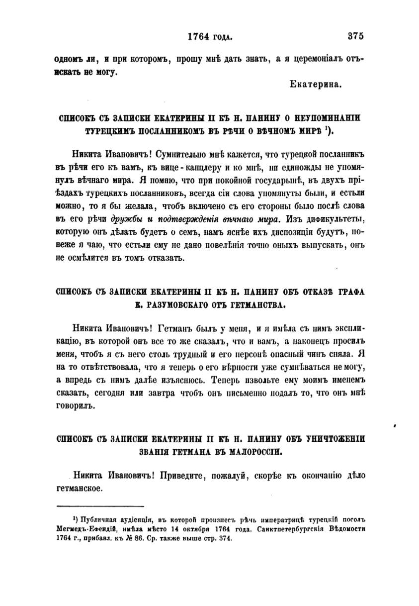 СПИСОКЪ СЪ ЗАПИСКИ ЕКАТЕРИНЫ