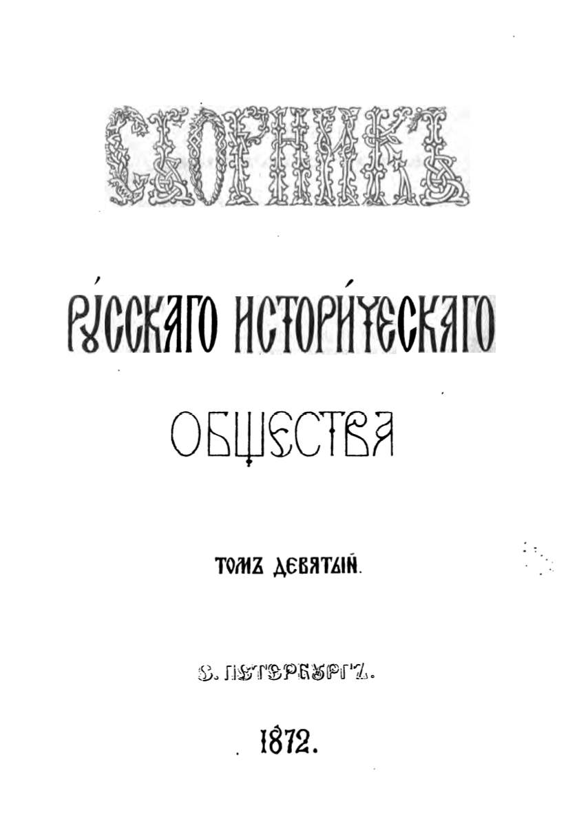 Сборник Русского исторического общества. Том девятый - page 1