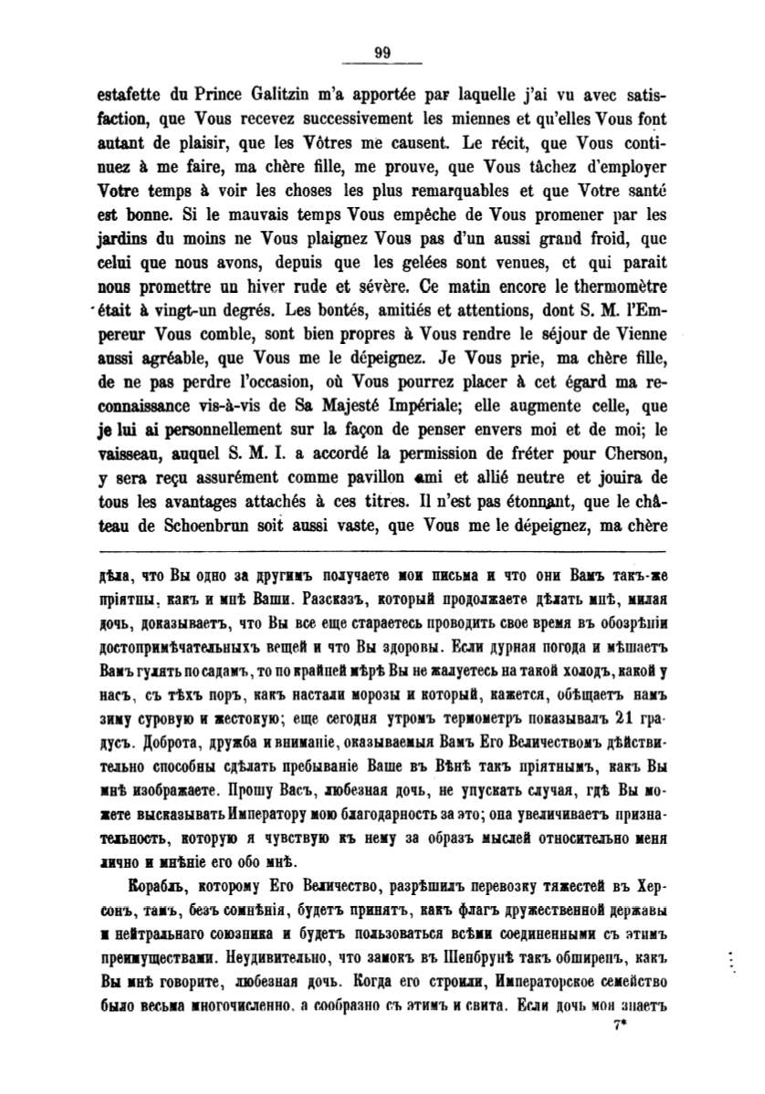 estafette du Prince Galitzin m'a apportee paF laquelle j'ai vu avec satis–