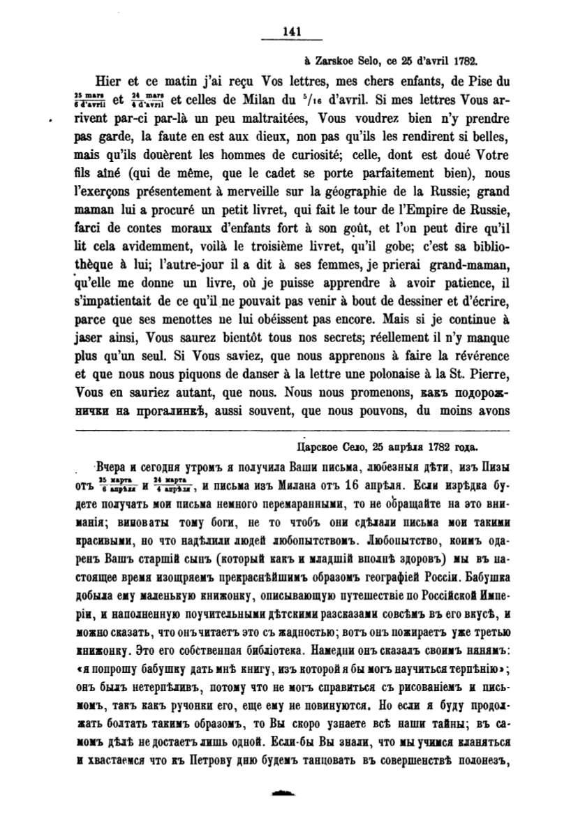 ·Вчера и сегодин утромъ н nолучила Ваши nисьма, любезнын дt.ти, изъ Пизы
