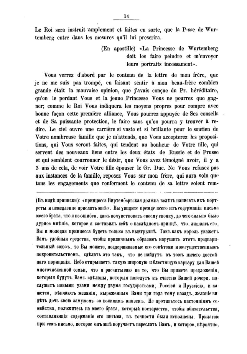 (Въ видt приписки): «принцеt·са Виртсм1iергскан до.nжпа ne.ntть папиrать ихъ порт
