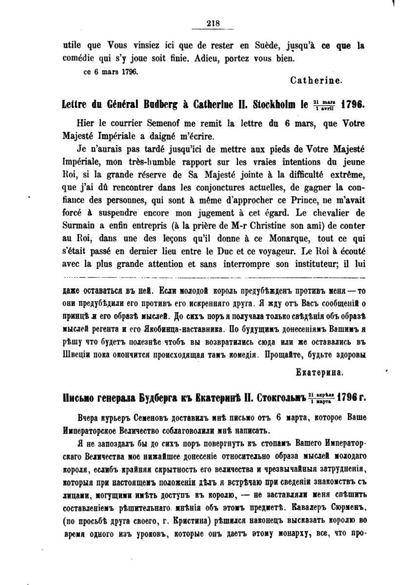 Швецiи пока окончитси происходища.а тамъ комедiи. Прощайте, будьте здоровы