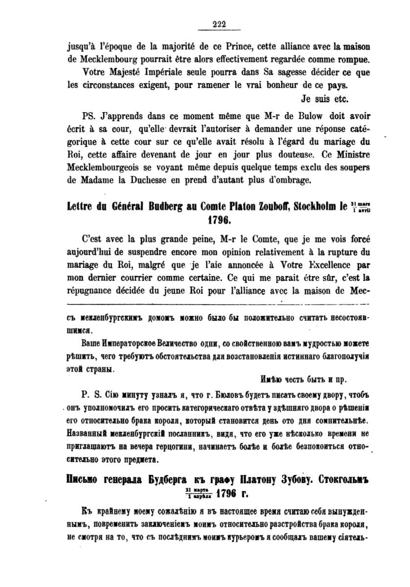 tettre du General Budberg au Comte Platon