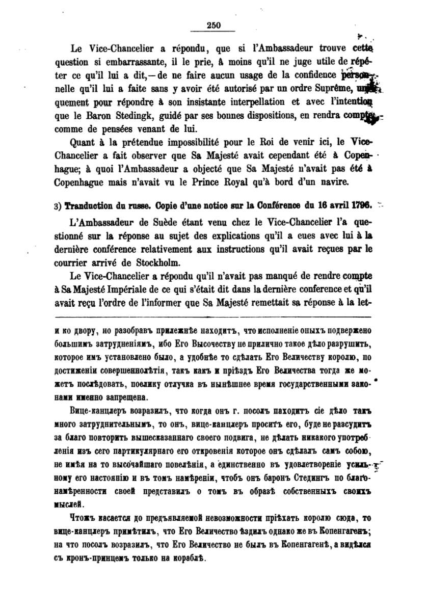 3) !randuction du russe. Oopie d'une notioe sur la Conference du 16 avril1796. -