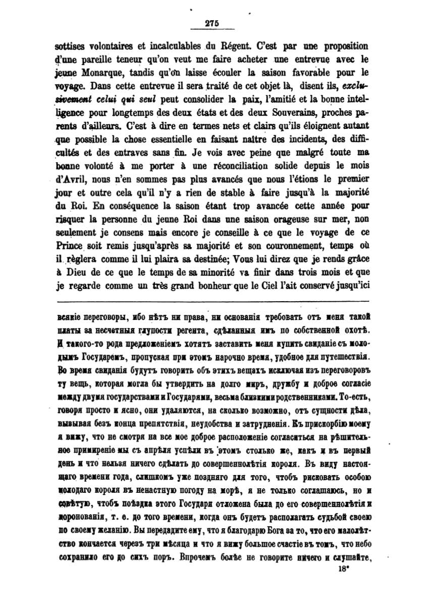 ligence pour longtemps des deux etats et des deux Sonverains, proches