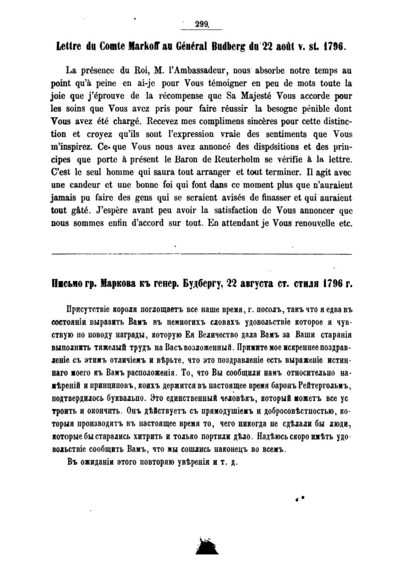 .tettre du Comte llarkof au Gerteral Budberg du·22 aolit v. st. t796.