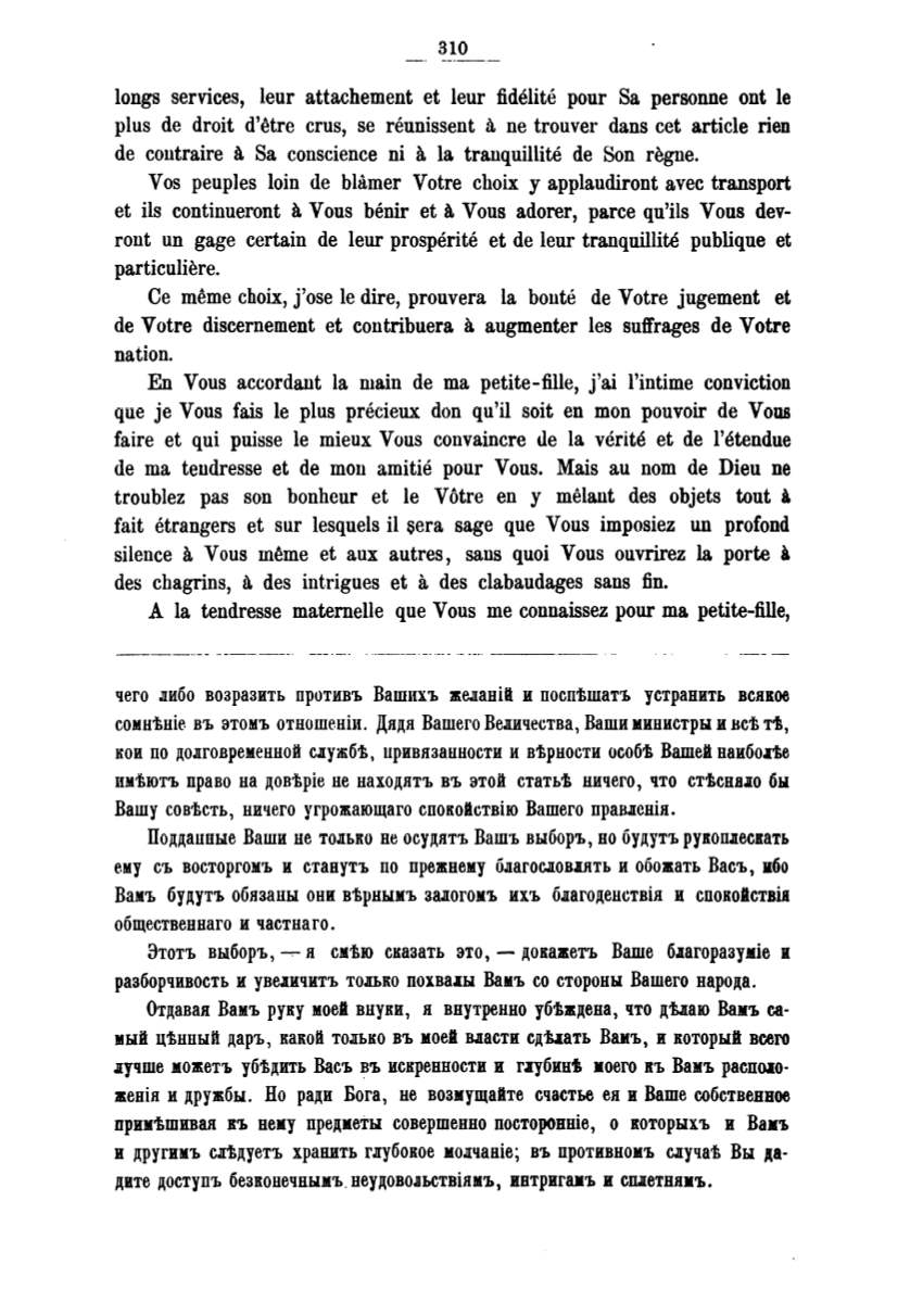 Отдавал Вамъ руку моей внуки, н ввутренно убtждева, что дtл:аю Вамъ са