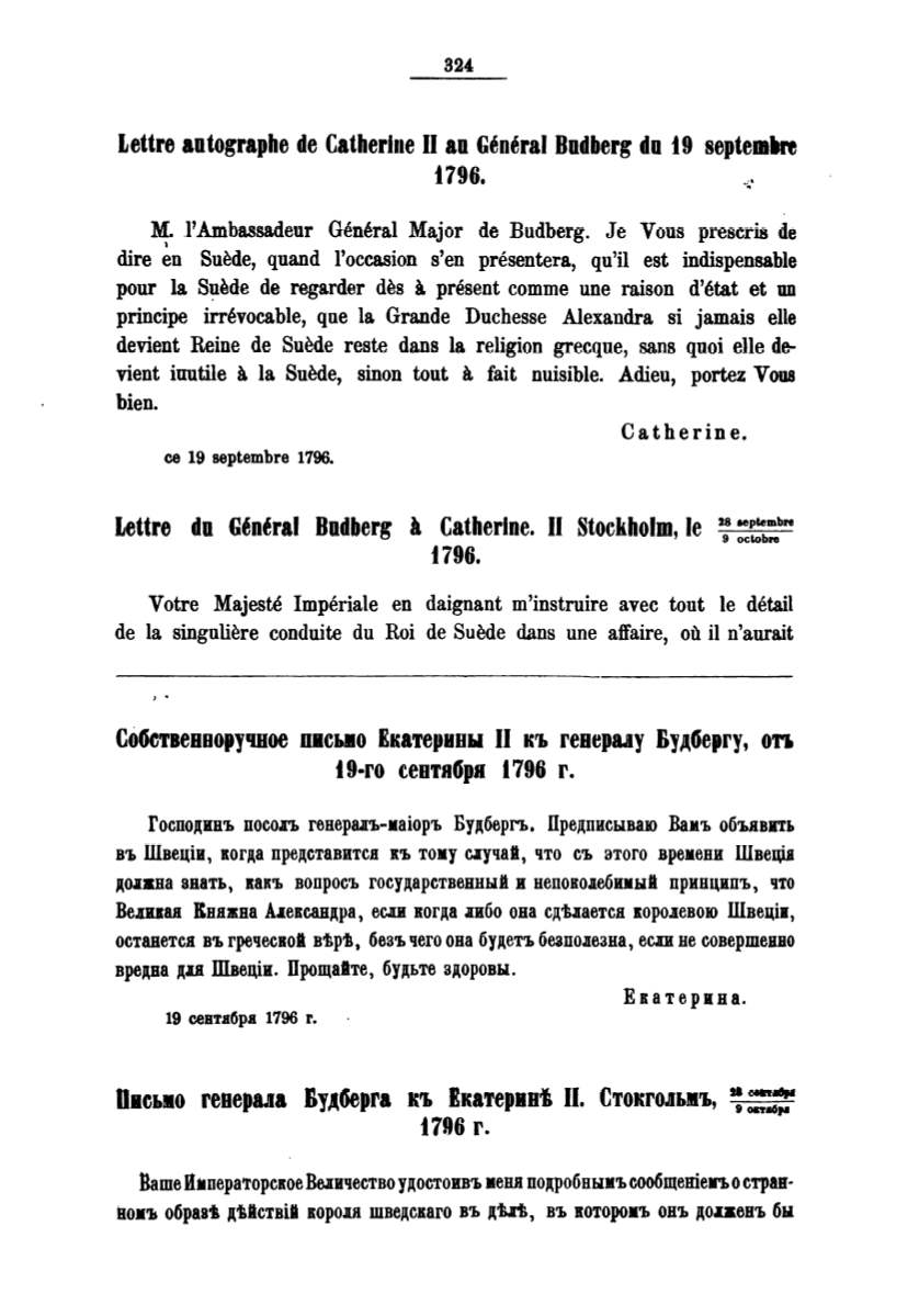 l'Ambassadeur General Major de Budberg. Je Vous prescris de