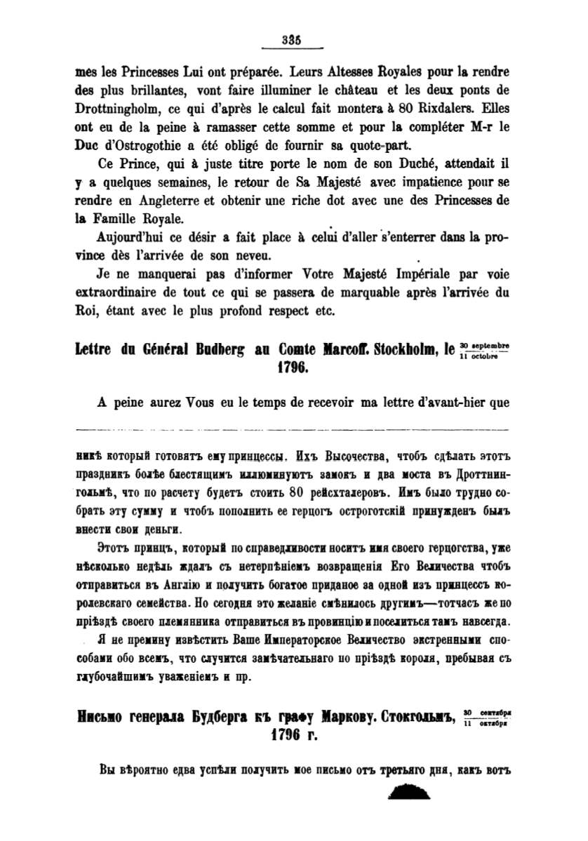 Lettre du Gentral Budberg au Comte laroof. Stockbolm, le