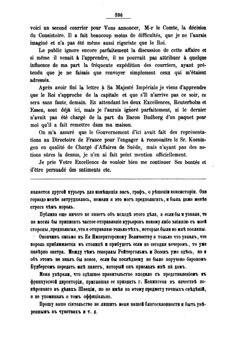 вв.паетса другой иурьеръ д.1в извtщенiв васъ, графъ, о рtшенiв в:овсисторiи. Она