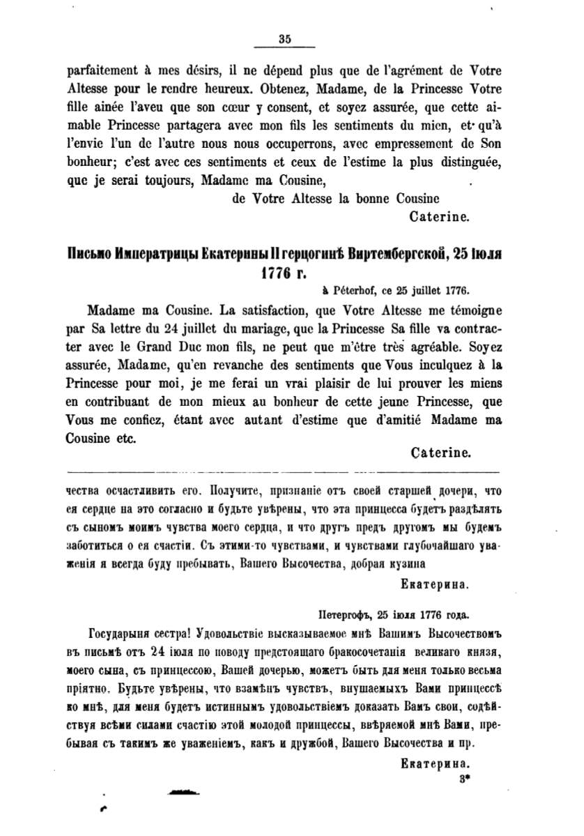 Государыня сестра! Удовольствiс высказываемое мнt Вашимъ ВысочествомЪ