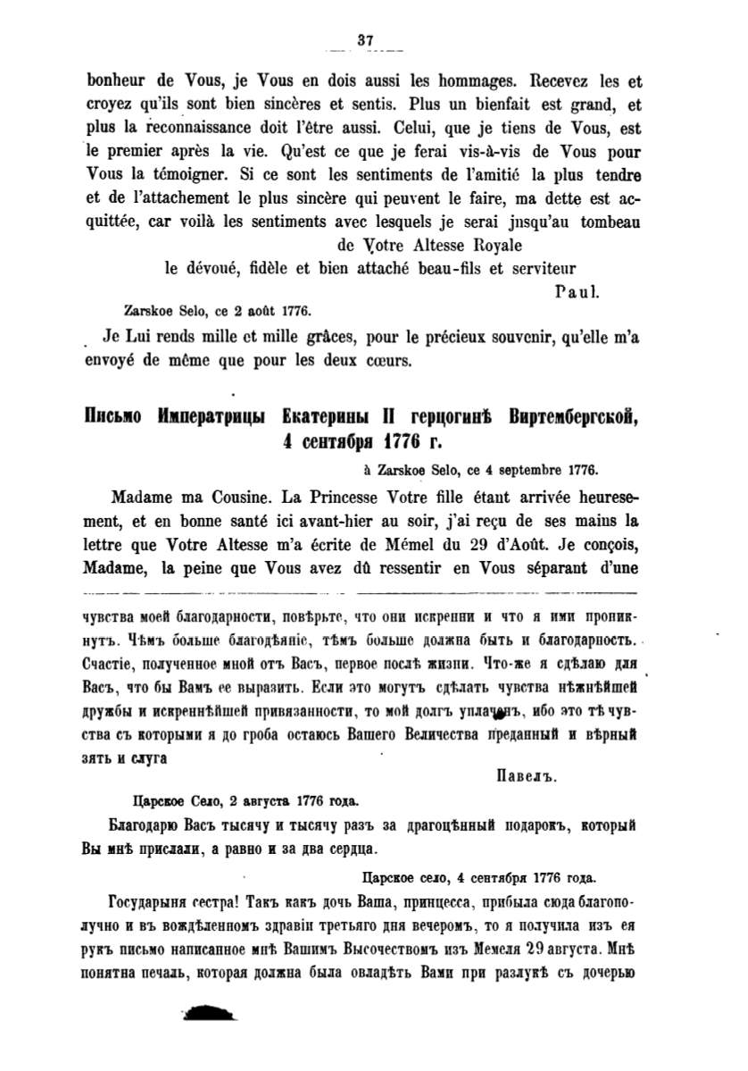 Государыня rестра! Такъ какъ дочь Ваша, припцесса, прибыла сюда благопо