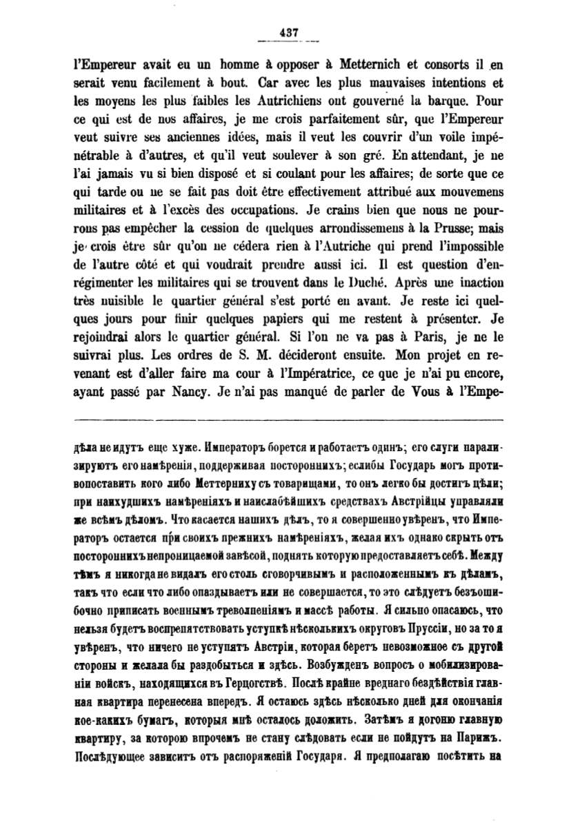 qui cst de nus affaires, je me crois parfaitement stir, quc l'Empereur