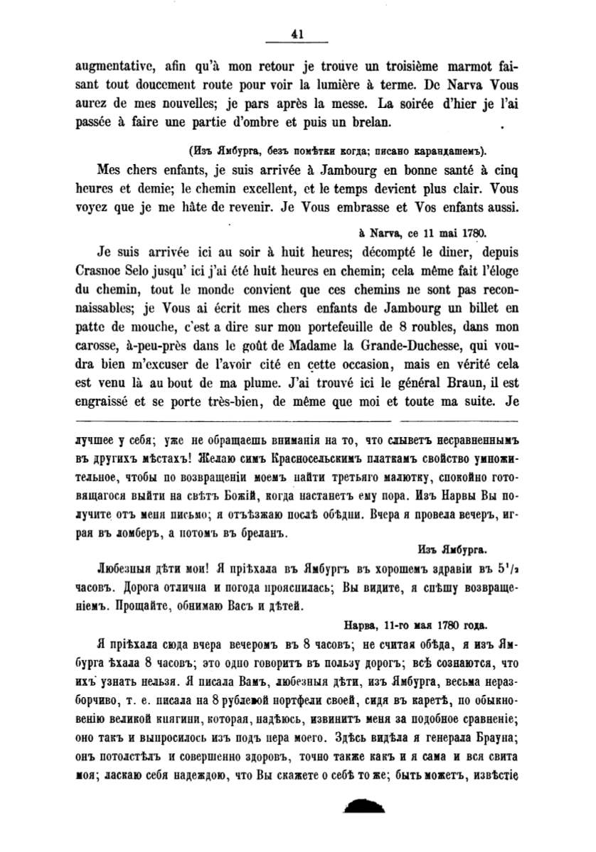 Любе.:шыл д·kти мои! Я прitхала въ Ямбургъ въ хорошсмъ здравiи въ