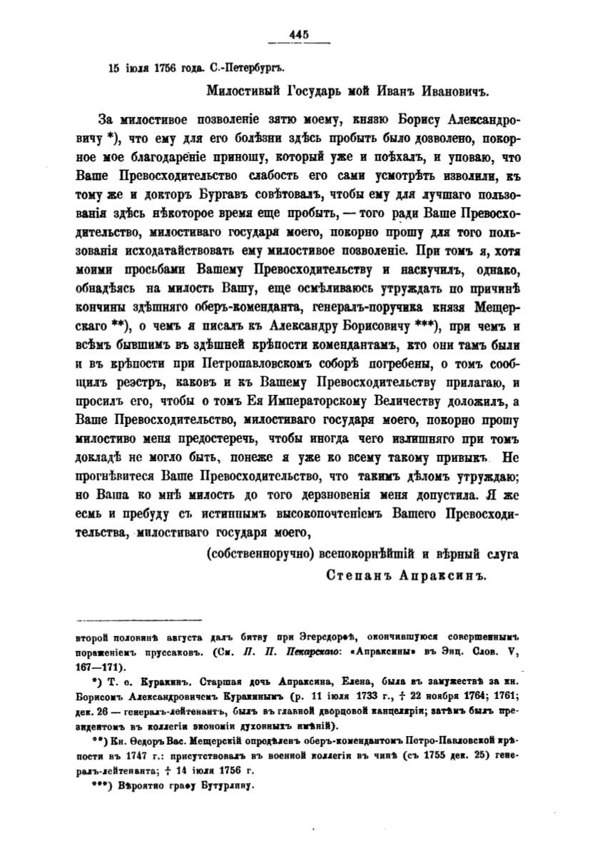 п. ПtжapcttatO: •Апраксины• ВЪ Энц. Со~ов.
