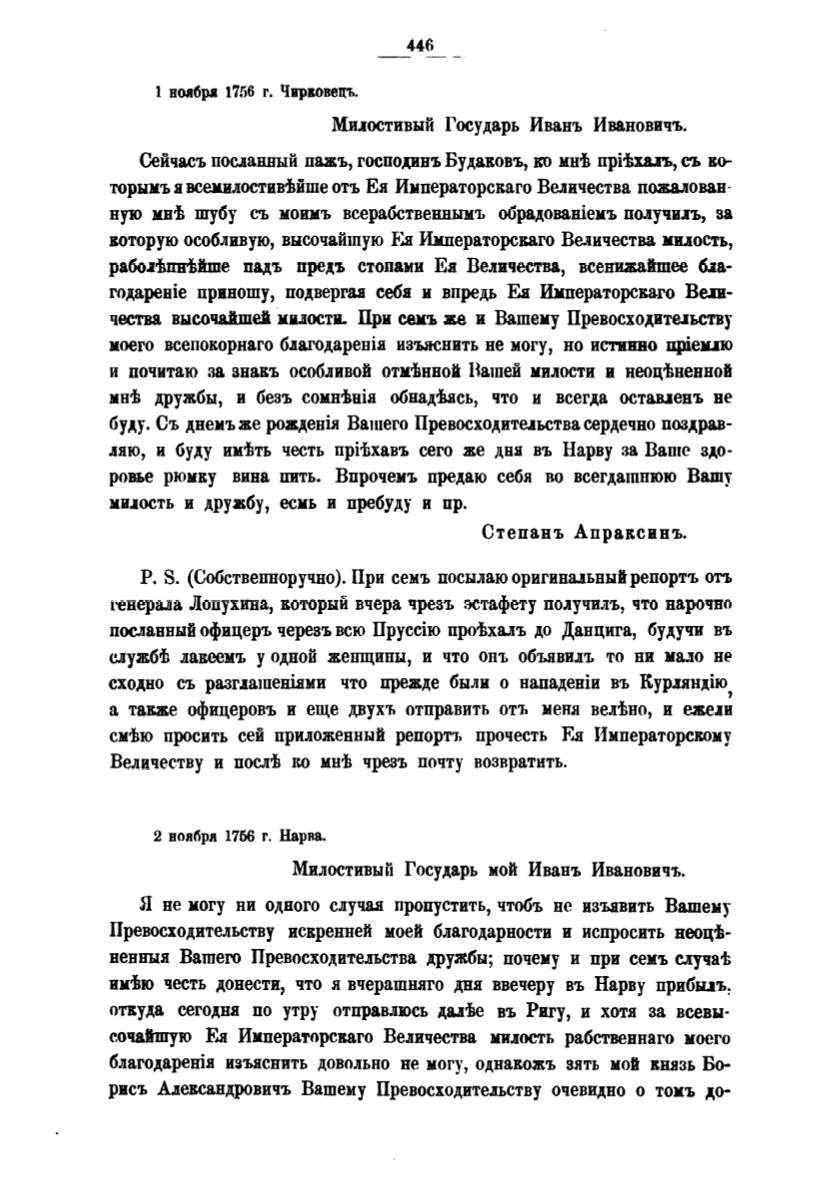 и:кtю честь донести, что .я вчерашн.яго дня ввечеру въ Нарву приGЫIЪ: