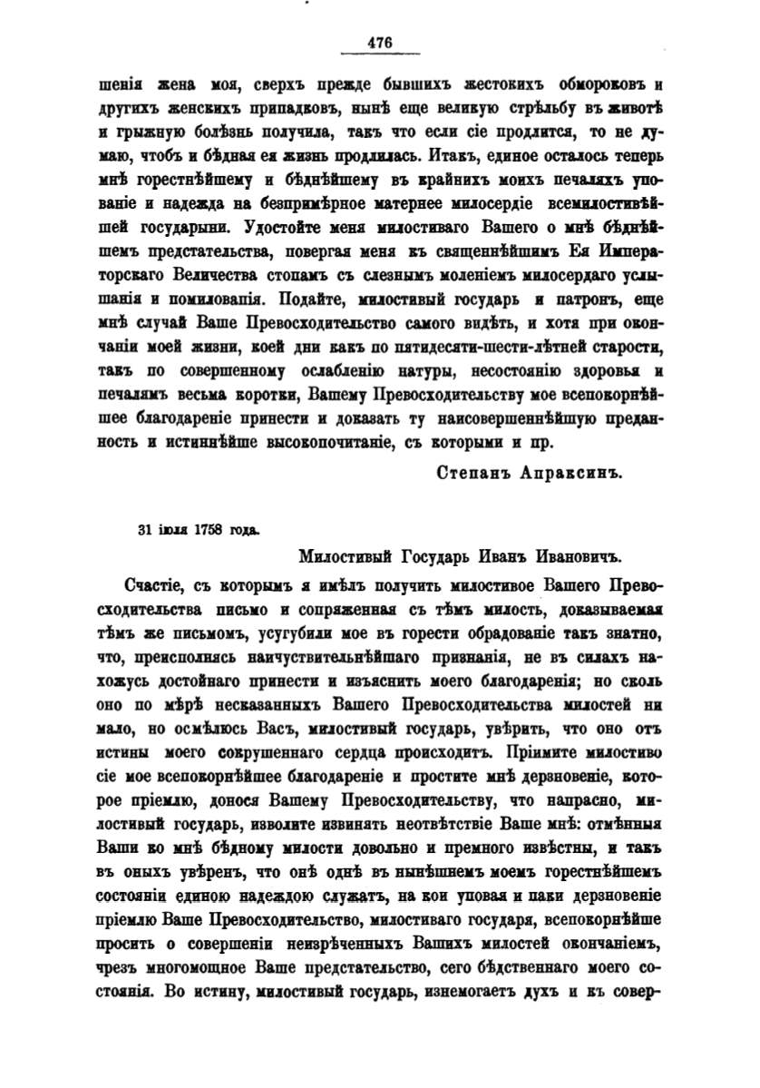 печuпъ весьма коротки, Вашему Превосходительству :мое всеповорвiJй