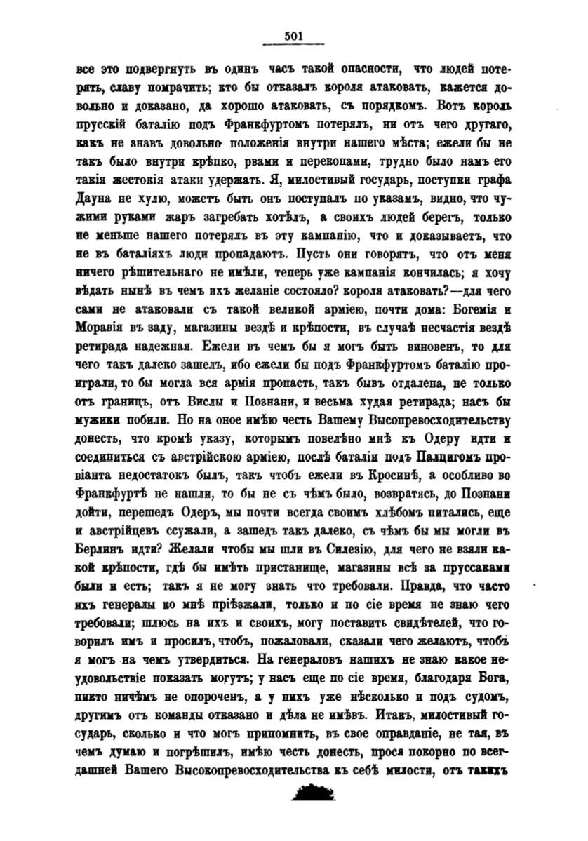 чего такъ дuеко зашелъ, ибо ежели бы подъ ФранкфуртомЪ баталiю про