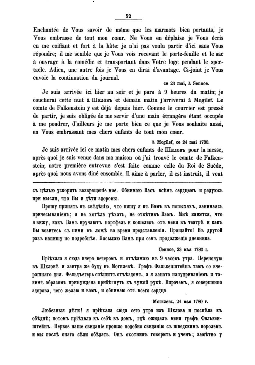въ Шкловt и завтра же буду _въ Могилtшt. Графъ Фалькенштейпъ тамъ со вче