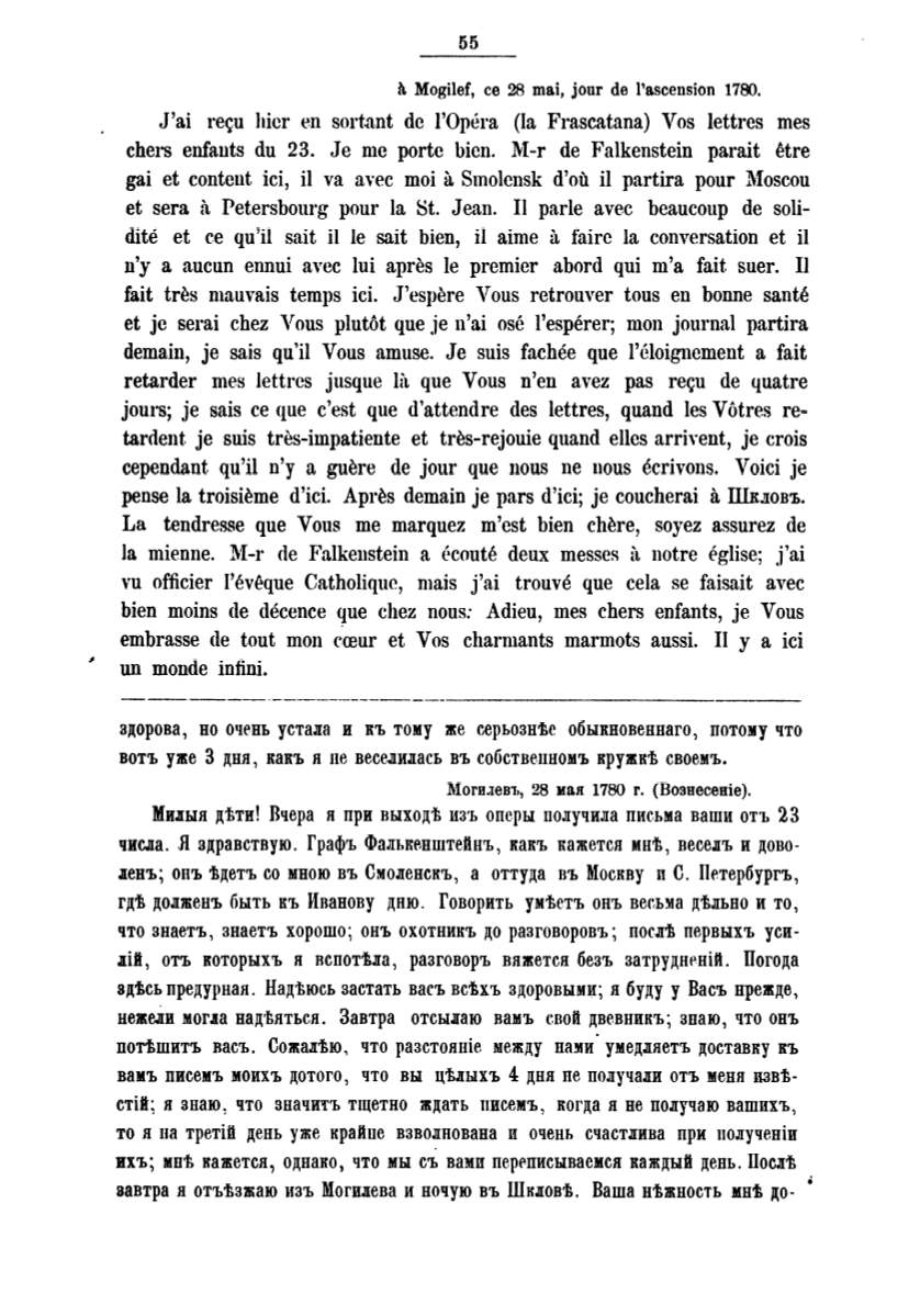 завтра н отъtзжаю изъ Моrи.в:ева и ночую въ Шкловt. Ваша нtжпость мпt до-