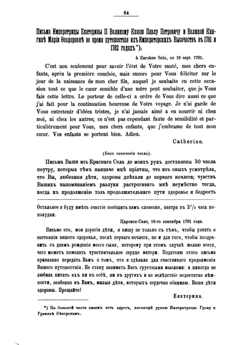 На бо.rьшеll части писемъ есть а,~~;рссъ, писаипult рукою Импсратр1rцы: Гра•J и