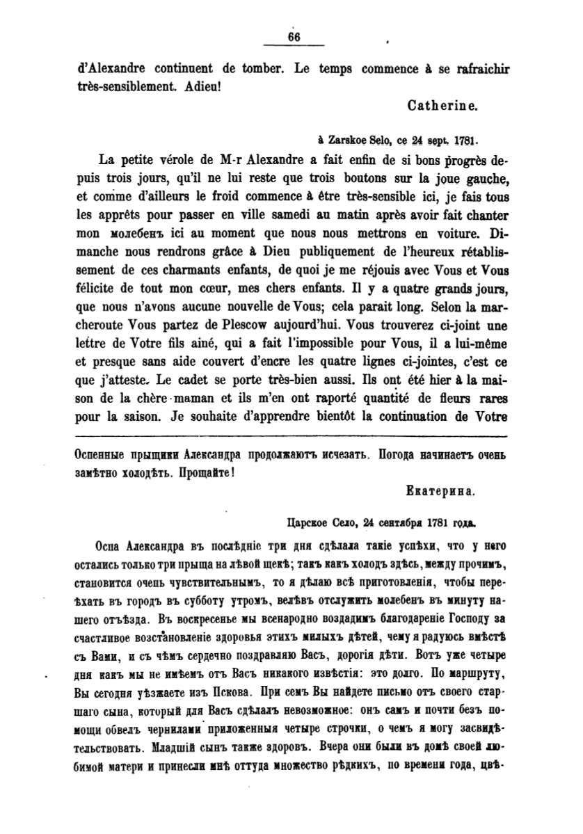 Оспа Александра въ пос.пtднiс три дин сдt.па.1а такiе успtхи, что у него