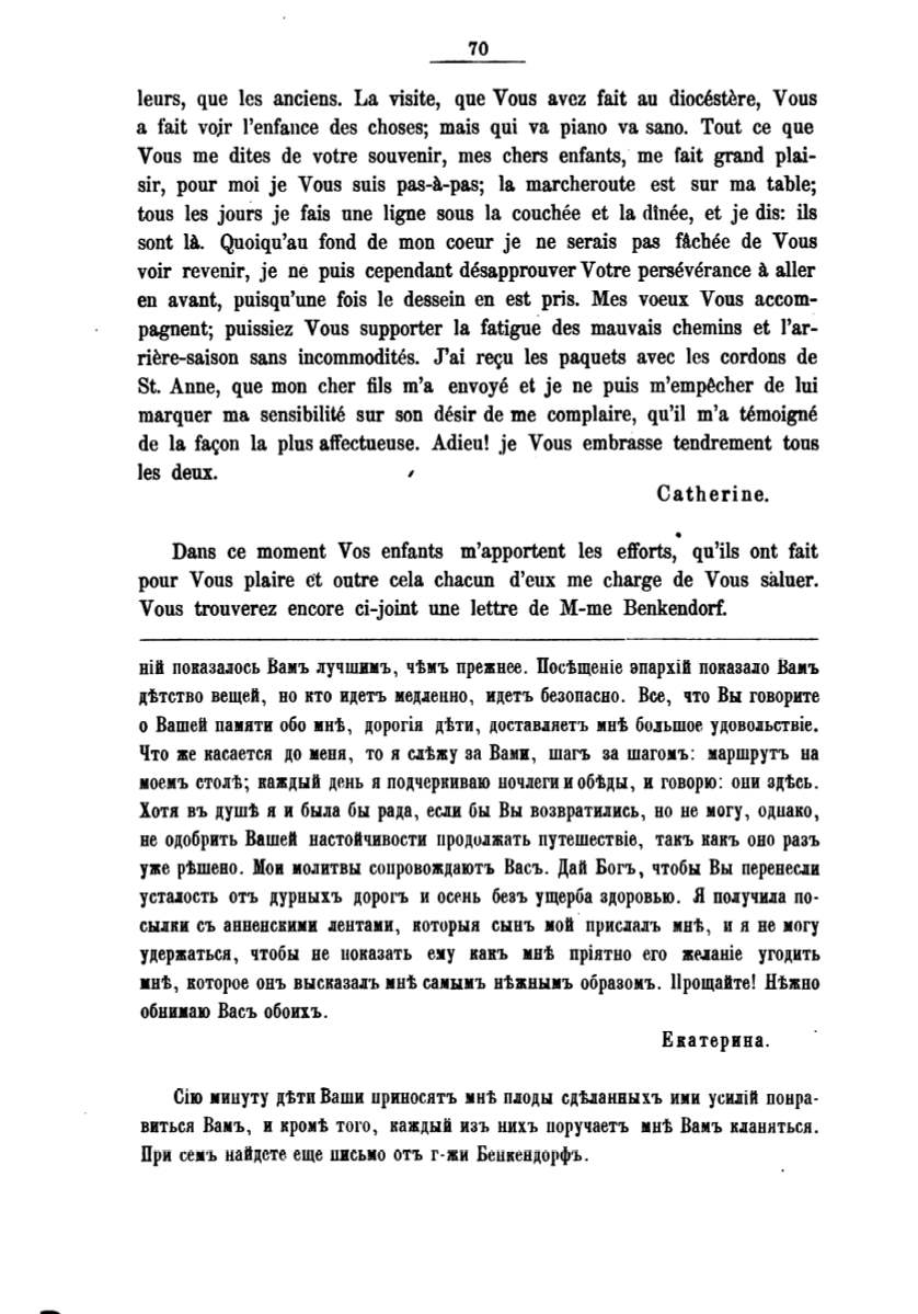 При семъ найдете еще uисьмо отъ г-жи Беuкендорфъ.