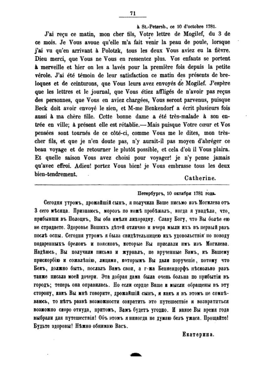Сегодня утромъ, дрожайшiй сын·ь, л поJJ:учила Ваше пие.ьмо изъ Могилева отъ