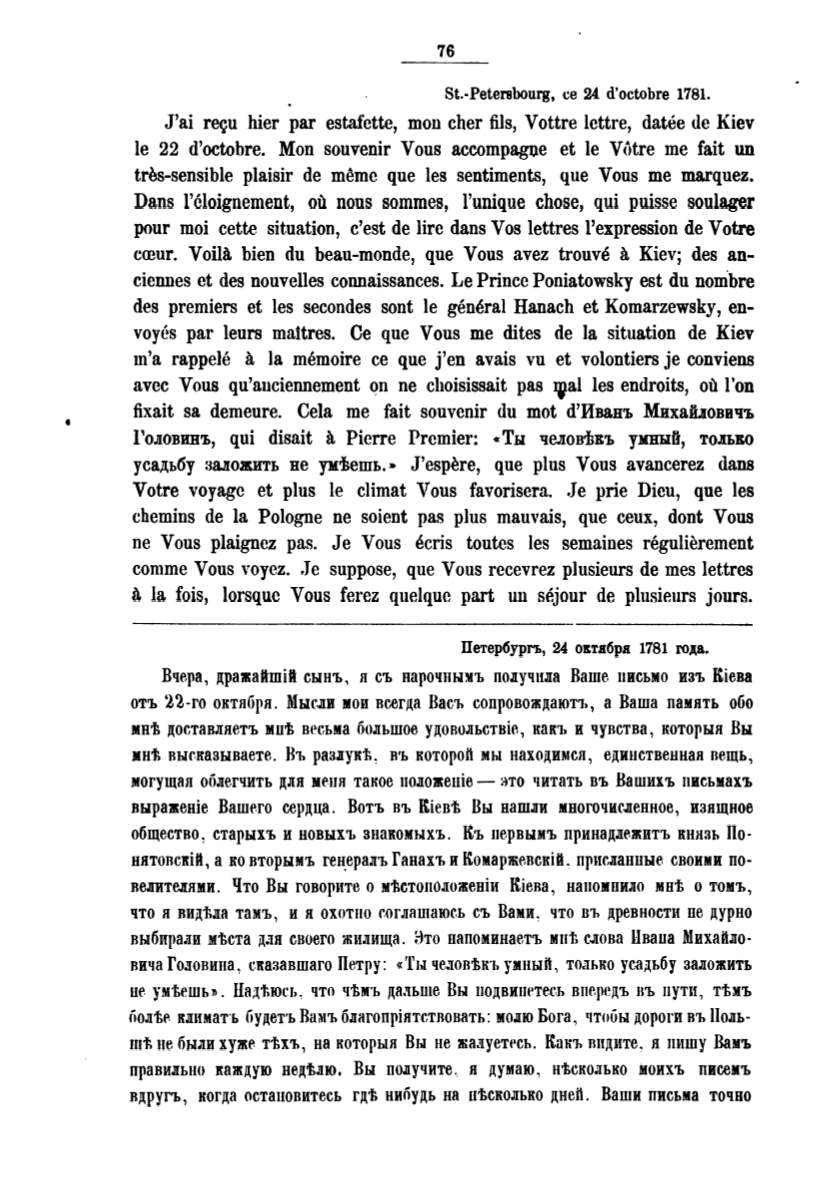 Вчера, цpaжaltmilt сынъ, л съ нарочньп1ъ noJJ:yчюra Ваше письмо изъ Rieвa