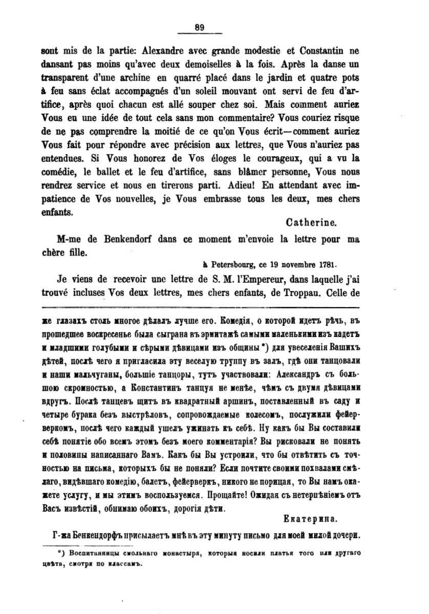Г-жа Бепкепдорфъ uрисылаетъ мнt. въ эту минуту письмо д.1я моей ми1ой дочери.